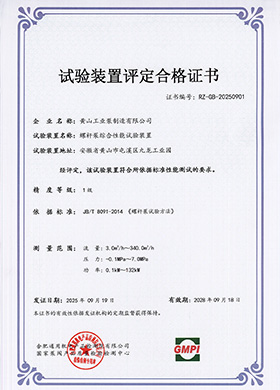 螺桿泵綜合性能實(shí)驗(yàn)裝置評(píng)定證書(shū)(1級(jí))